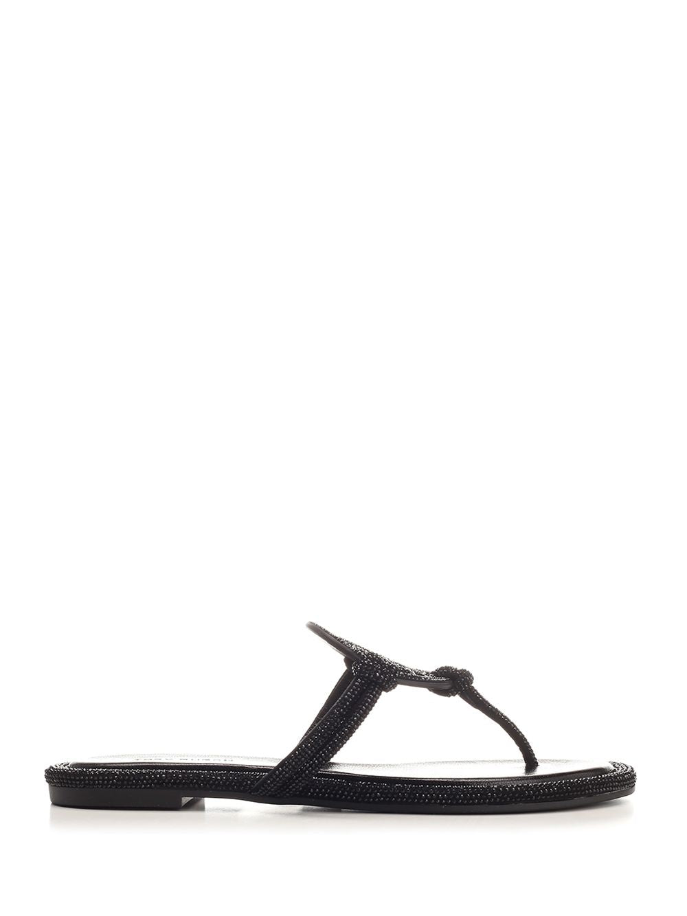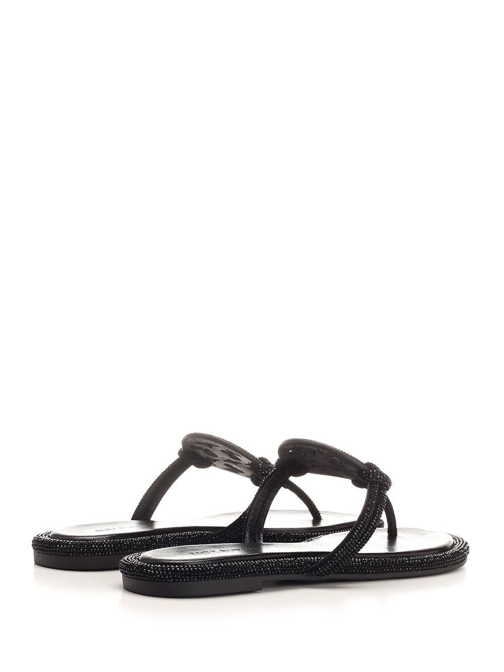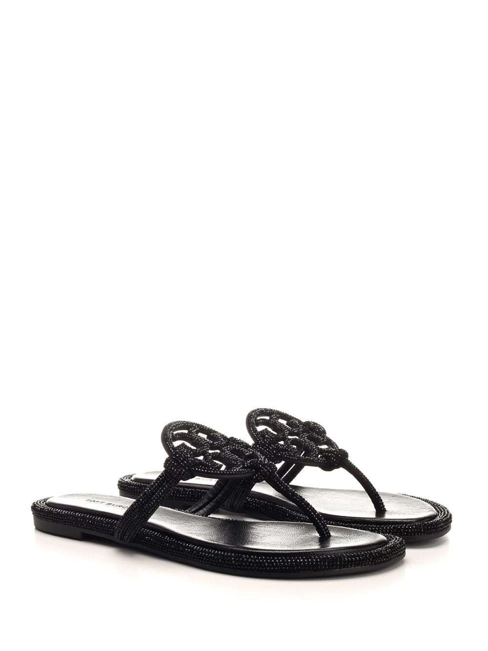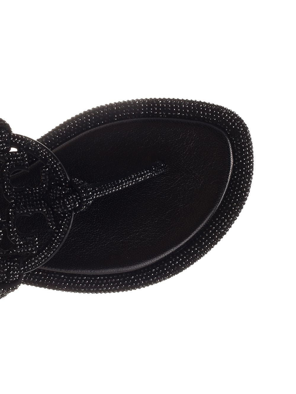 ミラー サンダル イン ブラック レザー トリー バーチ ウィズ マイクロ クリスタル プロフィール アンド ソフト
