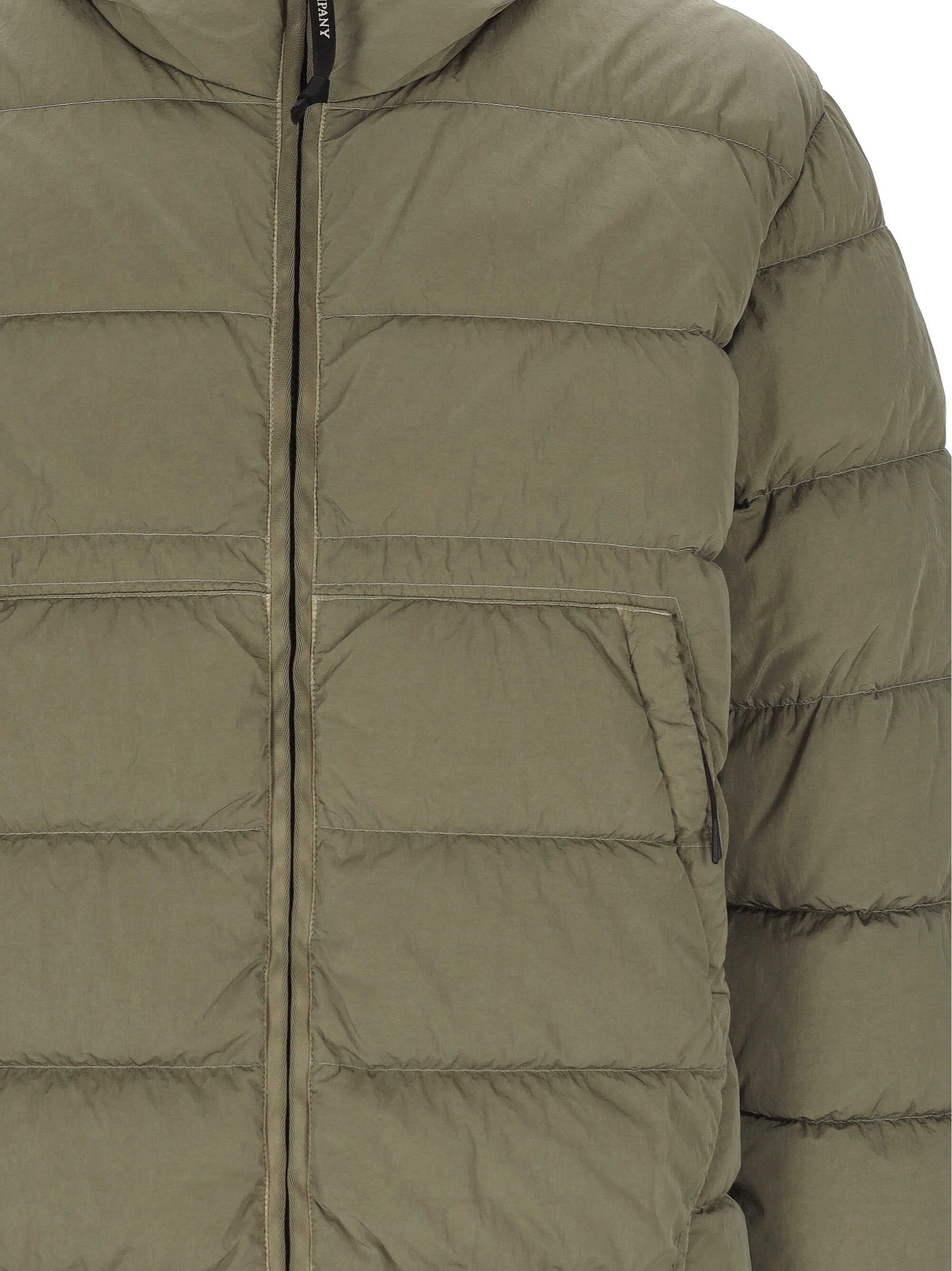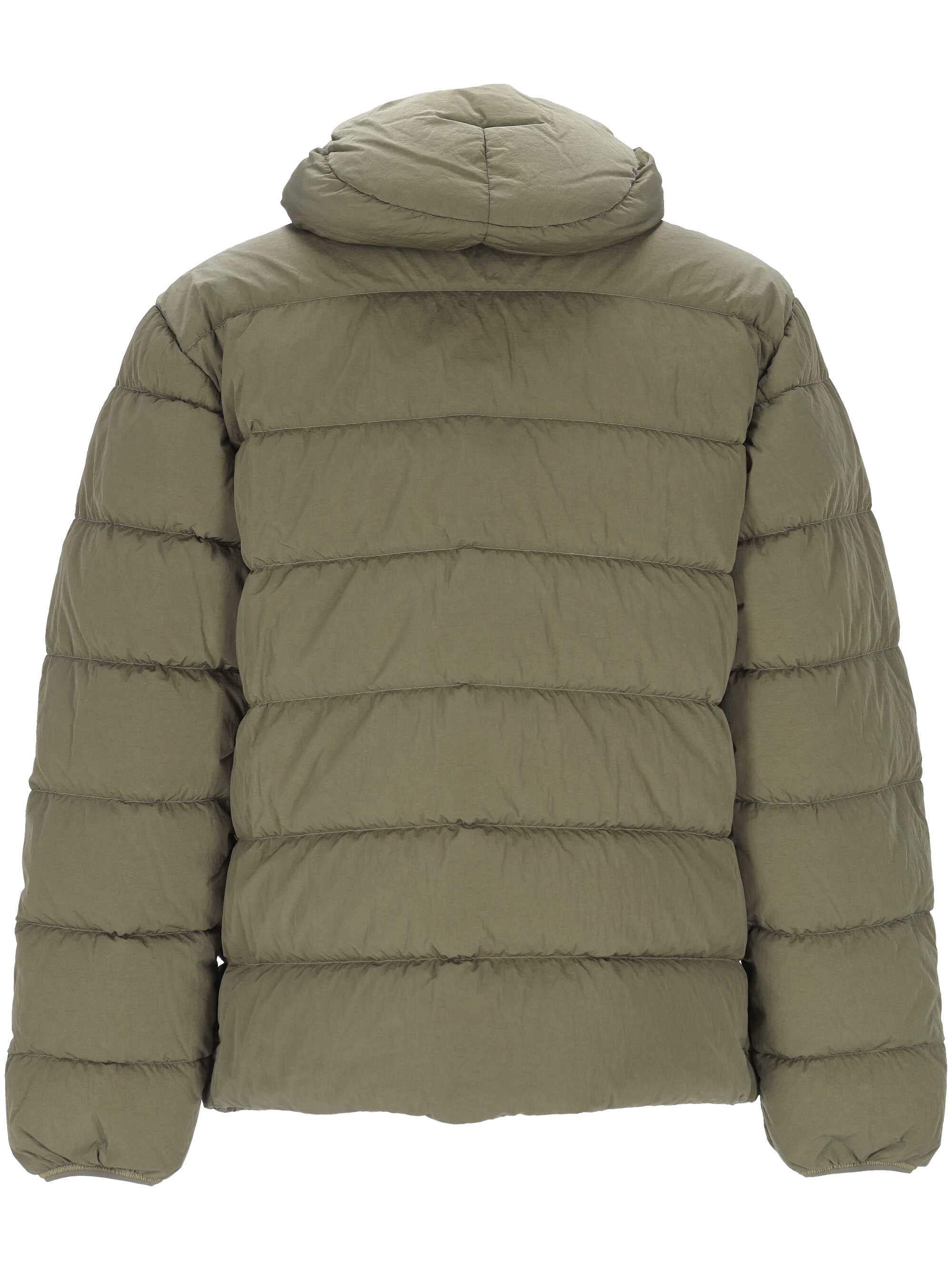 セージグリーン ダウンフィリング キルティングデザイン ファスナーフード付き ネックライン 長袖