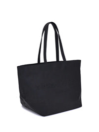 ミニマルなデザインに、フロントのエンボスロゴなど特徴的なディテールを組み合わせた「アレキサンダー ワン パンチ トートバッグ」。トップの結び目と2本のフラットなショルダーストラップが特徴で、すっきりとした機能的なシルエットです。大きめのシングルコンパートメントには、内側にラップトップ専用ポケットとロゴワッペンが付いています。