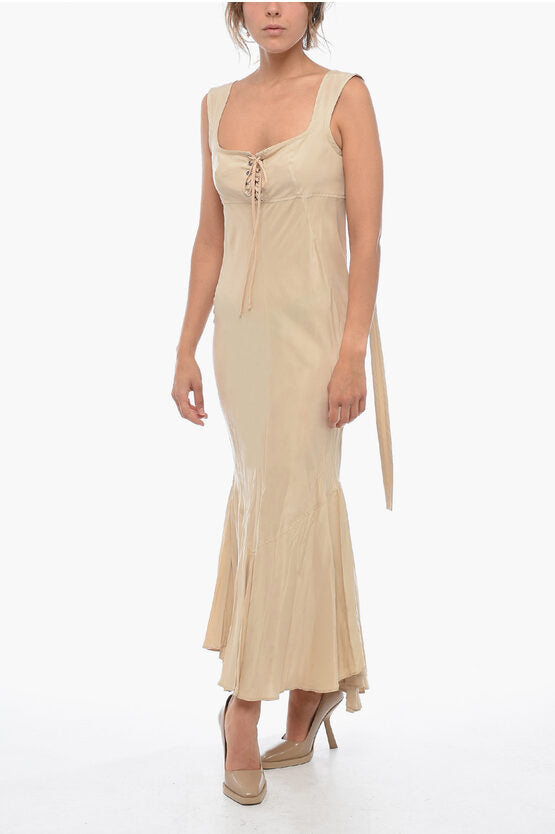 シルク ミディ ドレス ウィズ レースアップ ディテール