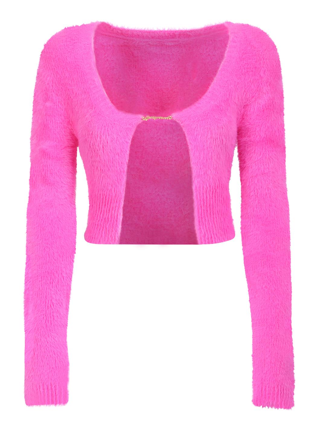 プランジングネック。長袖。ロゴプラーク。クロップド丈。カラー: ピンク