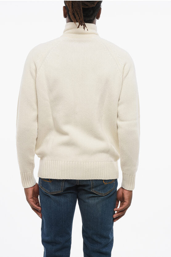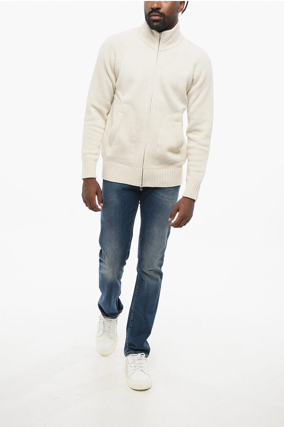 モック ネック ヴァージン ウール セーター ウィズ フロント ジップ