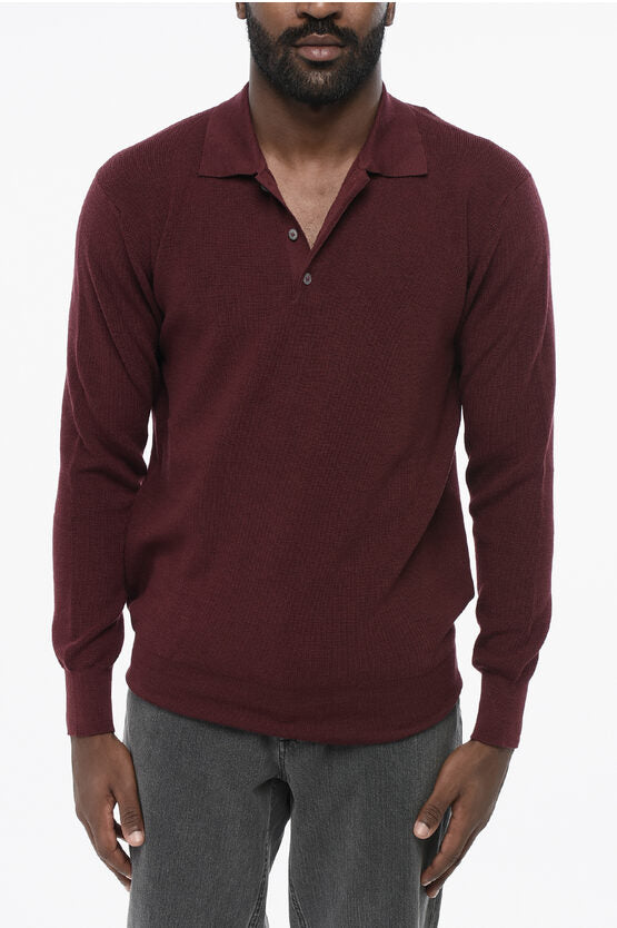 Virgin Wool Sweater with Polo Neck