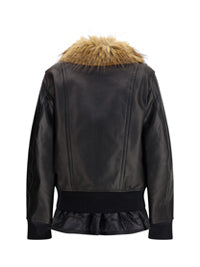 Leather Jacket with a Plush collar