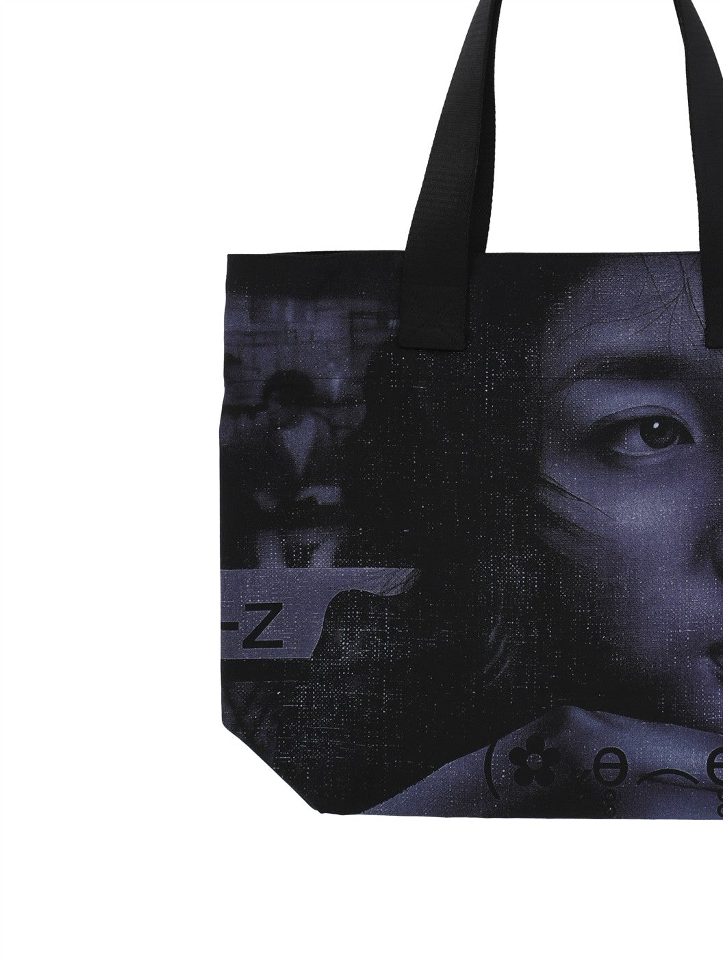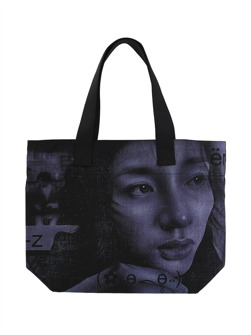 ブラック 2フラットトップハンドル 内側フロントにロゴパッチグラフィックプリント