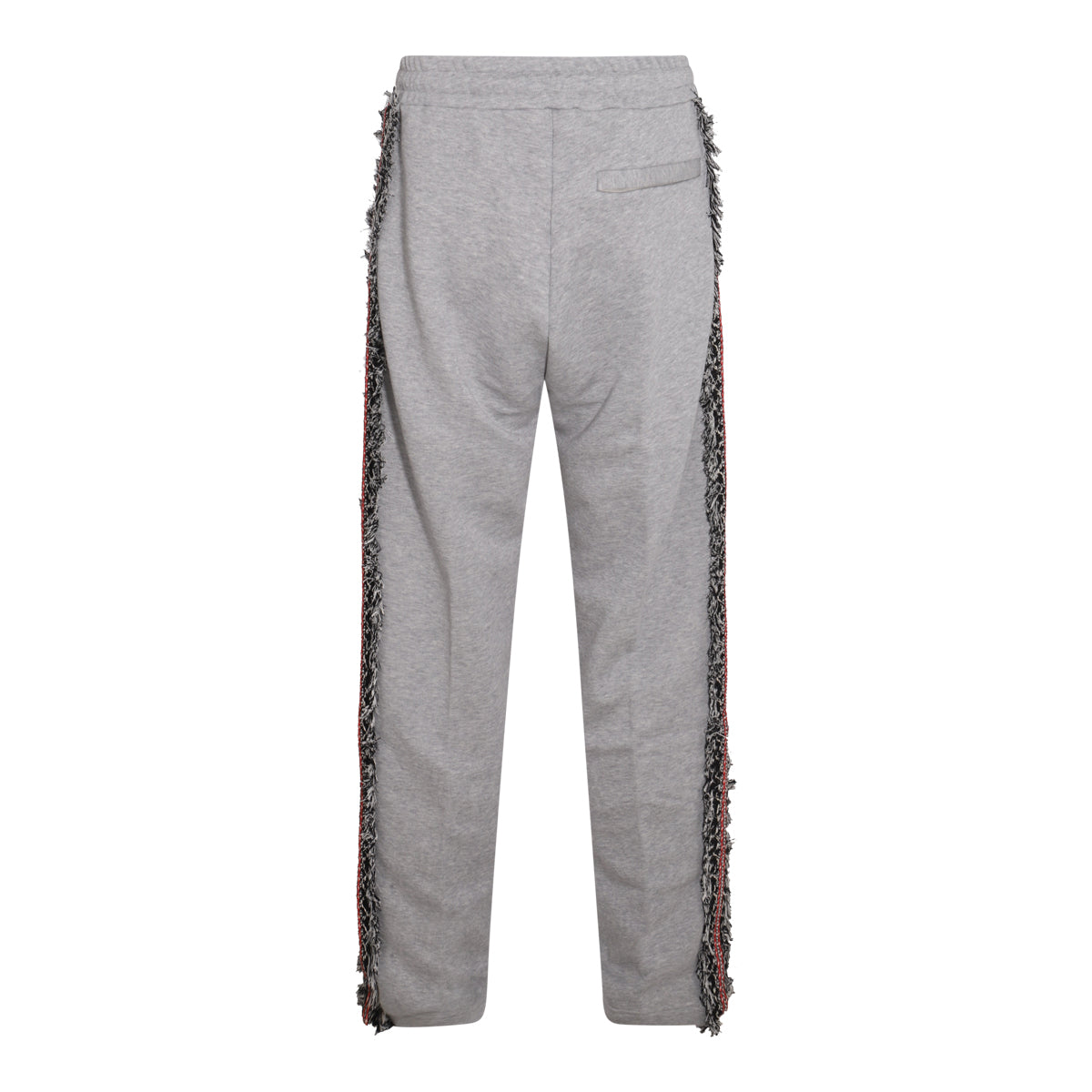 リトスからのグレーのコットンパンツです。ドローストリング付きのゴムウエスト、サイドポケット、脚にフリンジがあしらわれています。