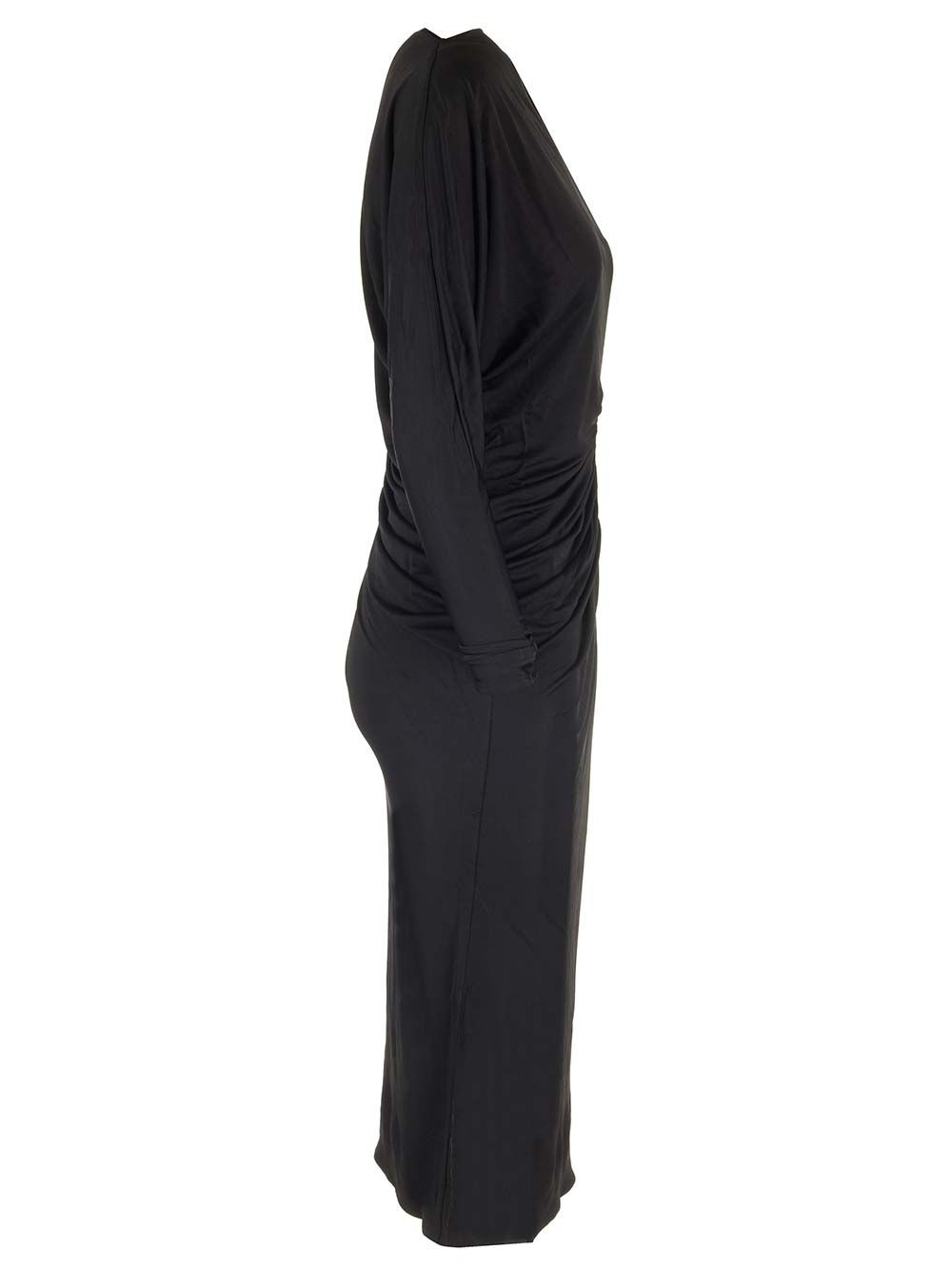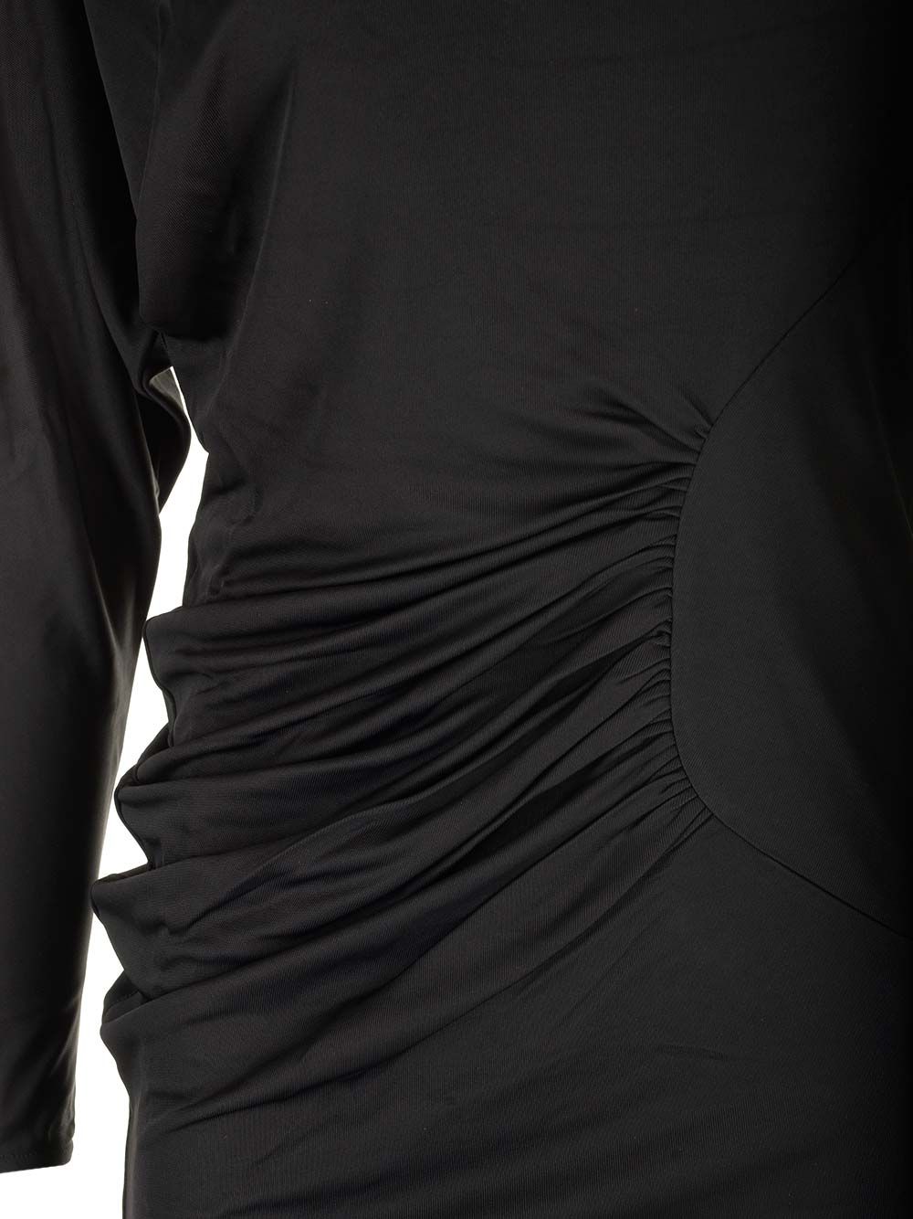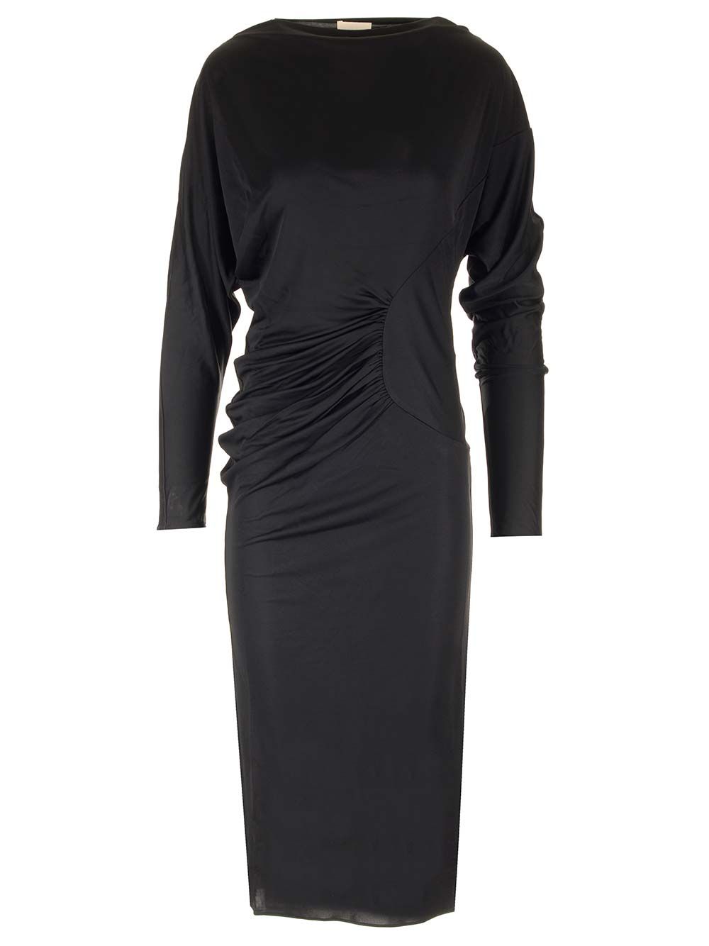 Oron dress in black jersey from Khaitè, with side draping, crew neck, long sleeves.
