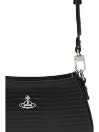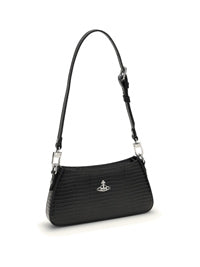 Vivienne Westwoodの「Tasha Shoulder Bag」は、スマートフォンや必需品を収納するのに最適なコンパクトなサイズと流線型のシルエットが特徴です。スナップボタンとファスナーで開閉し、ショルダーストラップは長さ調節と取り外しが可能です。ラインオーブモチーフの緩やかなカーブのエッジとシルバートーンの金具がデザインを引き立て、モアレのライニングがアクセントになっています。