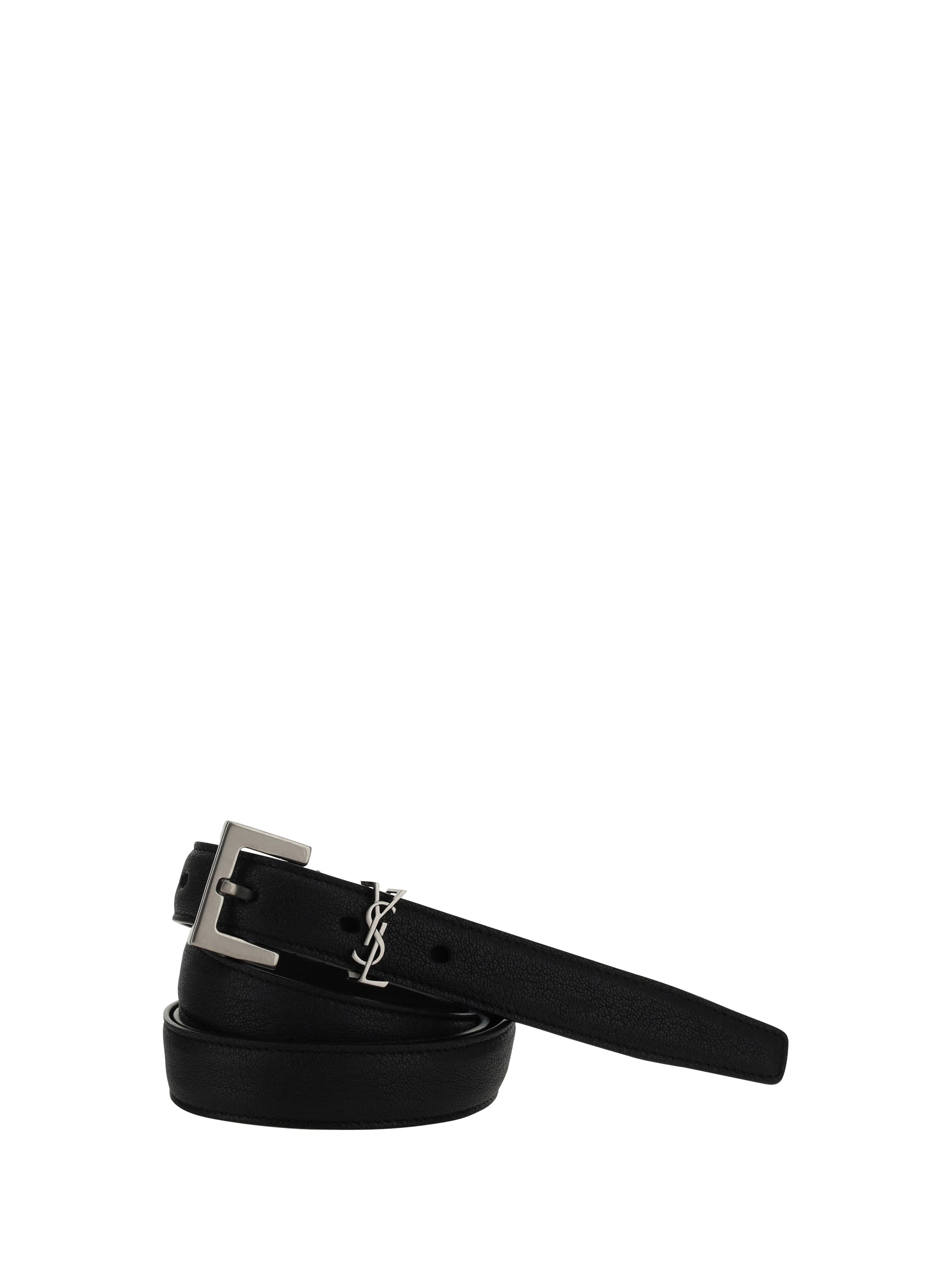 カーフスキン ベルト by Saint Laurent - 長方形のメタルバックル - ブランドを象徴するモノグラムのコントラストプレート。厚さ:2cm
