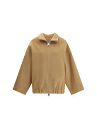 カイテのギャレット・ジャケットは、リサイクル・ウールを主原料とし、ソフトでありながら構築的なダブルフェイス・ウールを贅沢に使用。襟はスタンドカラーで決定的なラインを描き、袖はダブルフェイス構造によって彫刻のように広くなっている。従来のネックの縫い目に代わって戦略的なダーツが施され、2ウェイ・ジッパーと伸縮性のあるブルゾンの裾が、暖かさと軽量の快適さ、そして現代的なシルエットを提供する一着に仕上がっている。