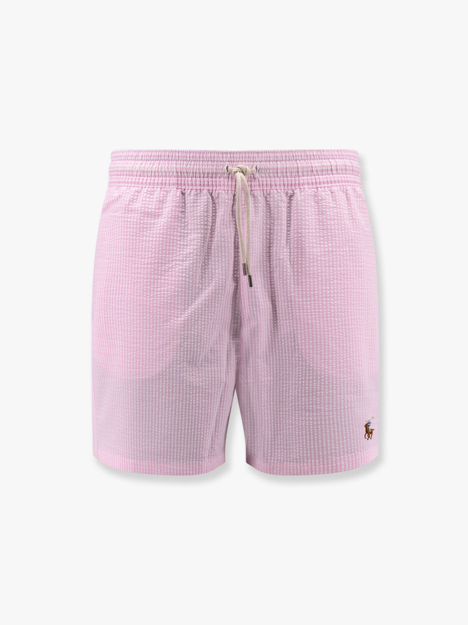 コットン ブレンド ストライプ スイム トランク ウィズ ロゴ エンブロイダリー