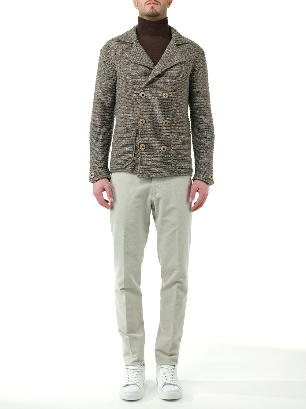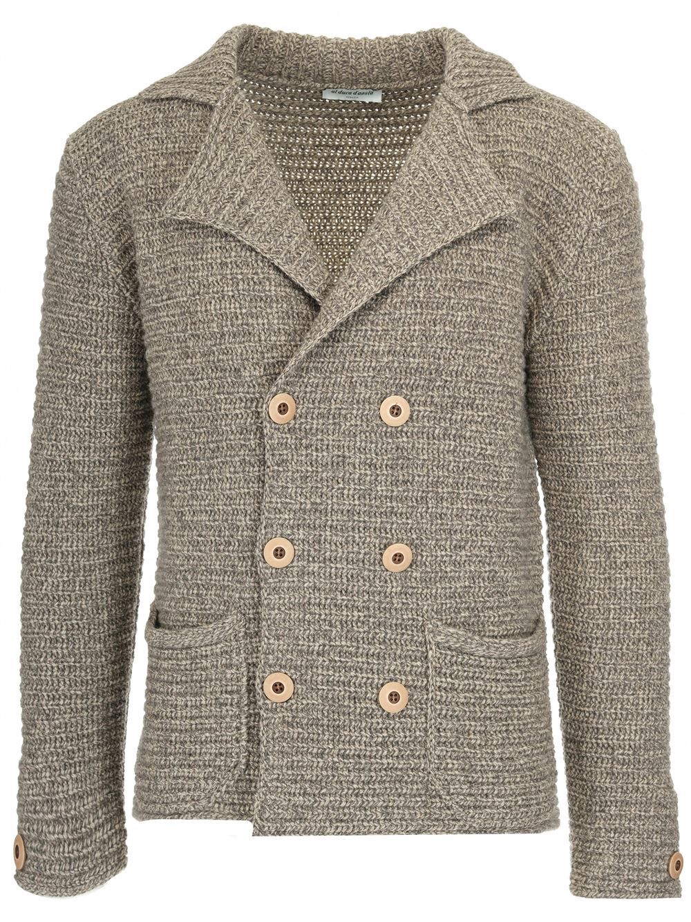 ブラウン ダブルブレステッド ブレザー イン ウール ニット ウィズ ラペル