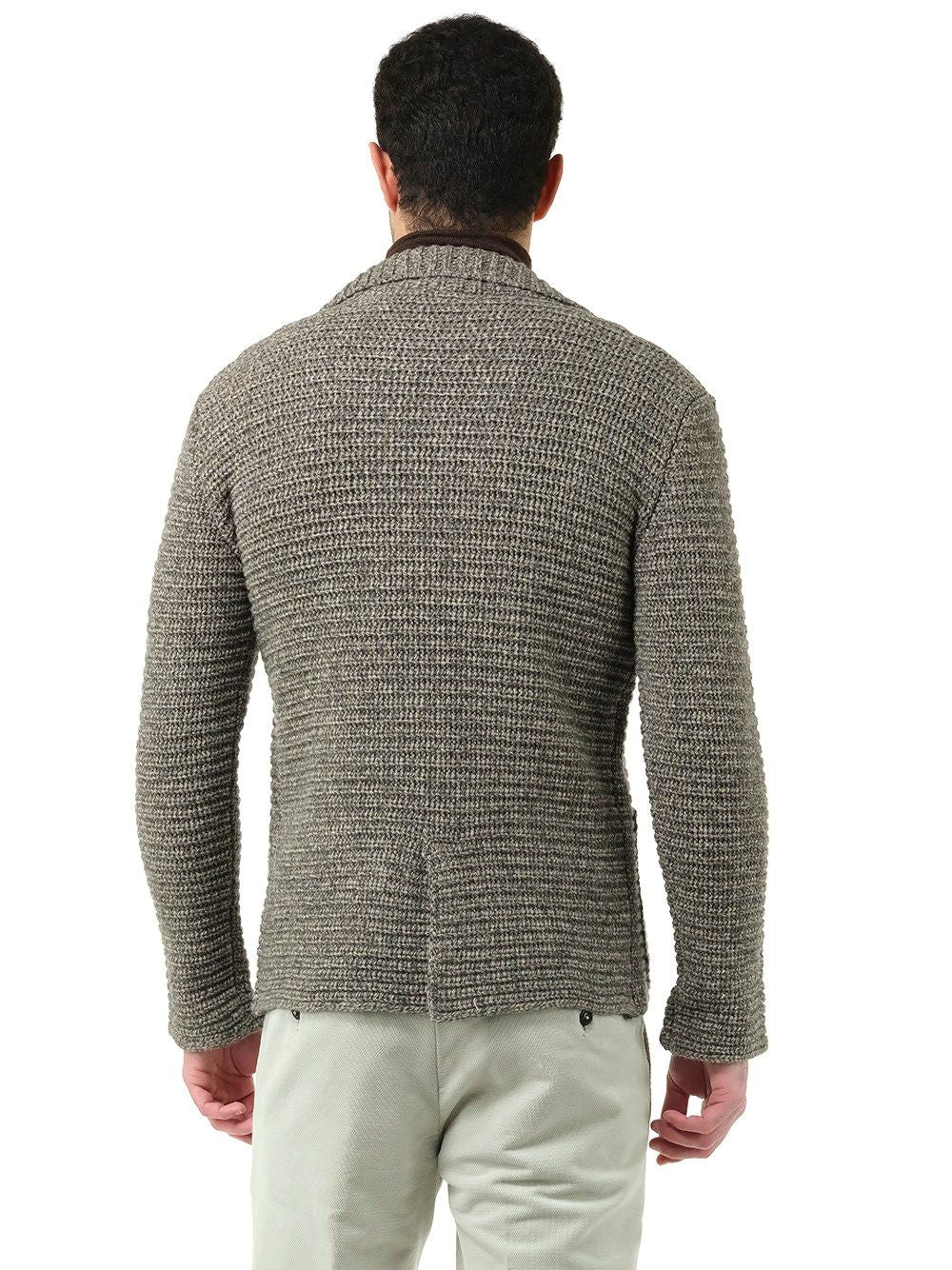 ラペル付きウールニットのブラウン・ダブルブレスト・ブレザー