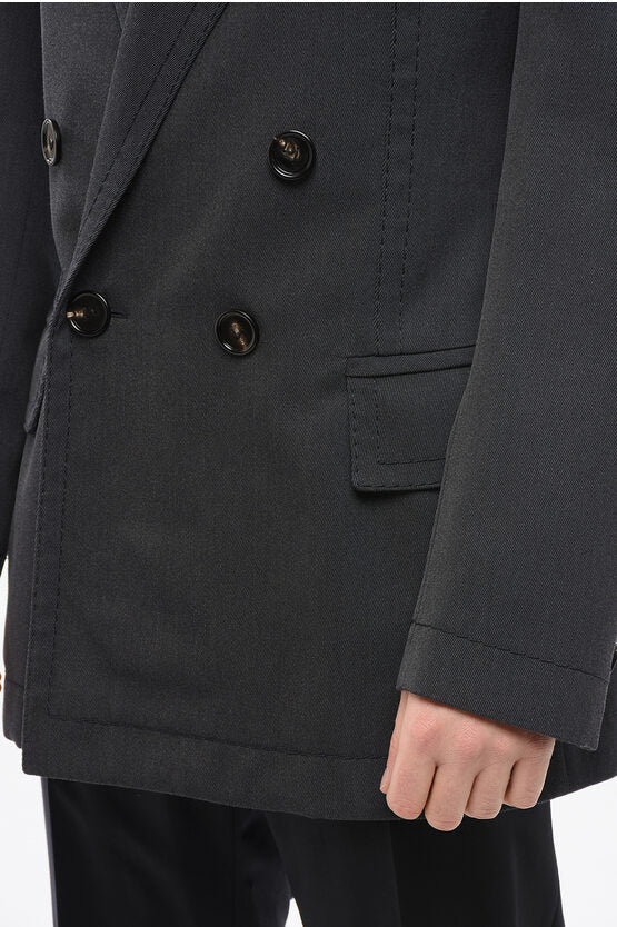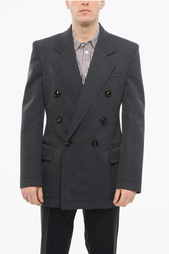Double-breasted Twill Wool Blazer with Visible Stitchings