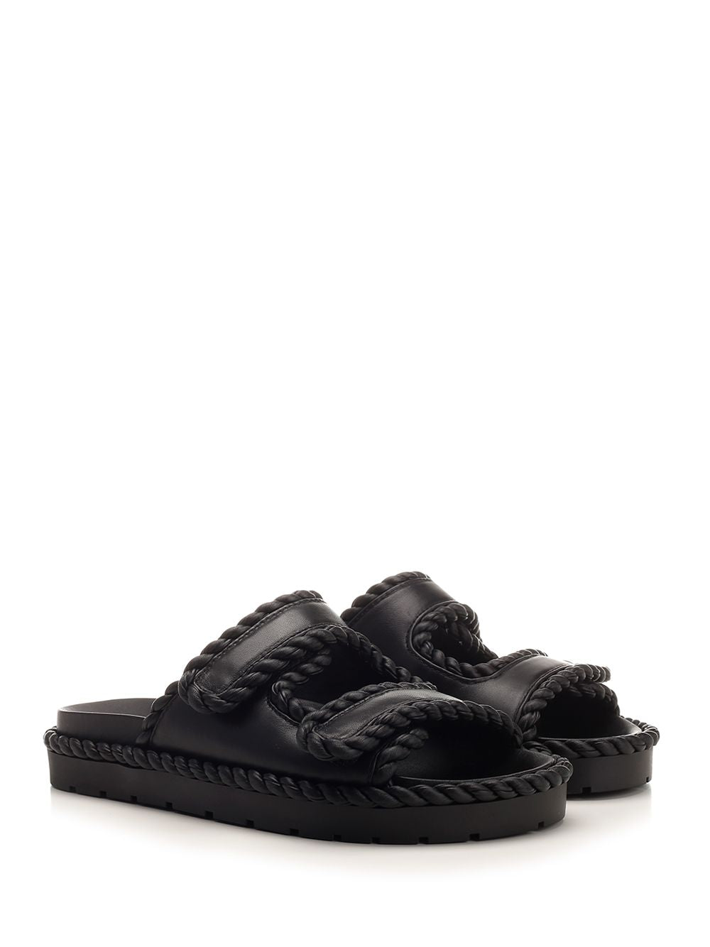 Black Jack flat mules from Bottega Veneta in leather with torchon details