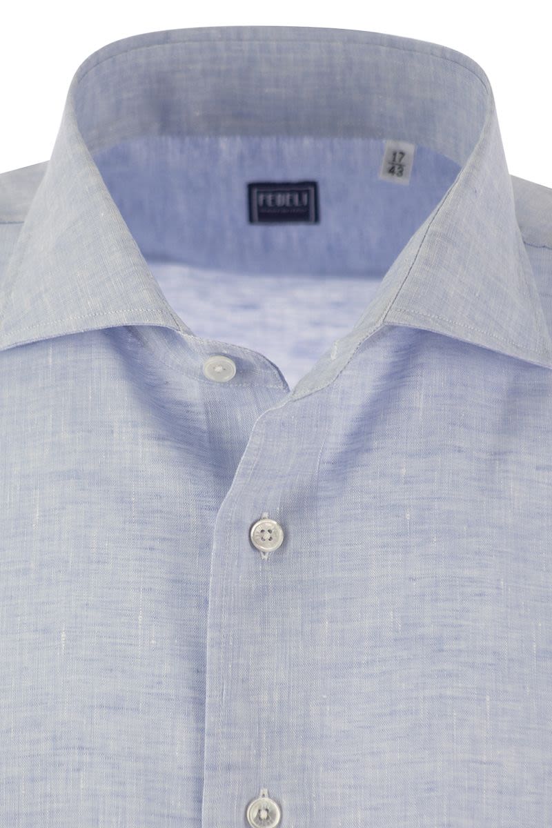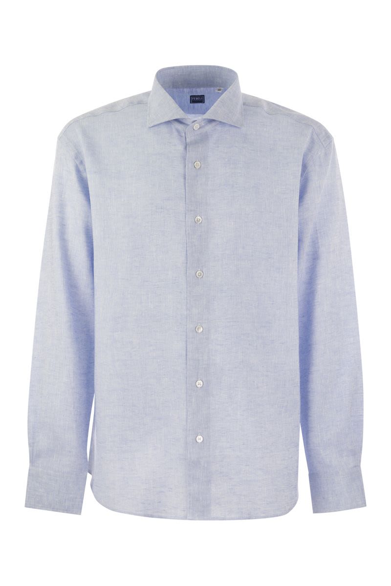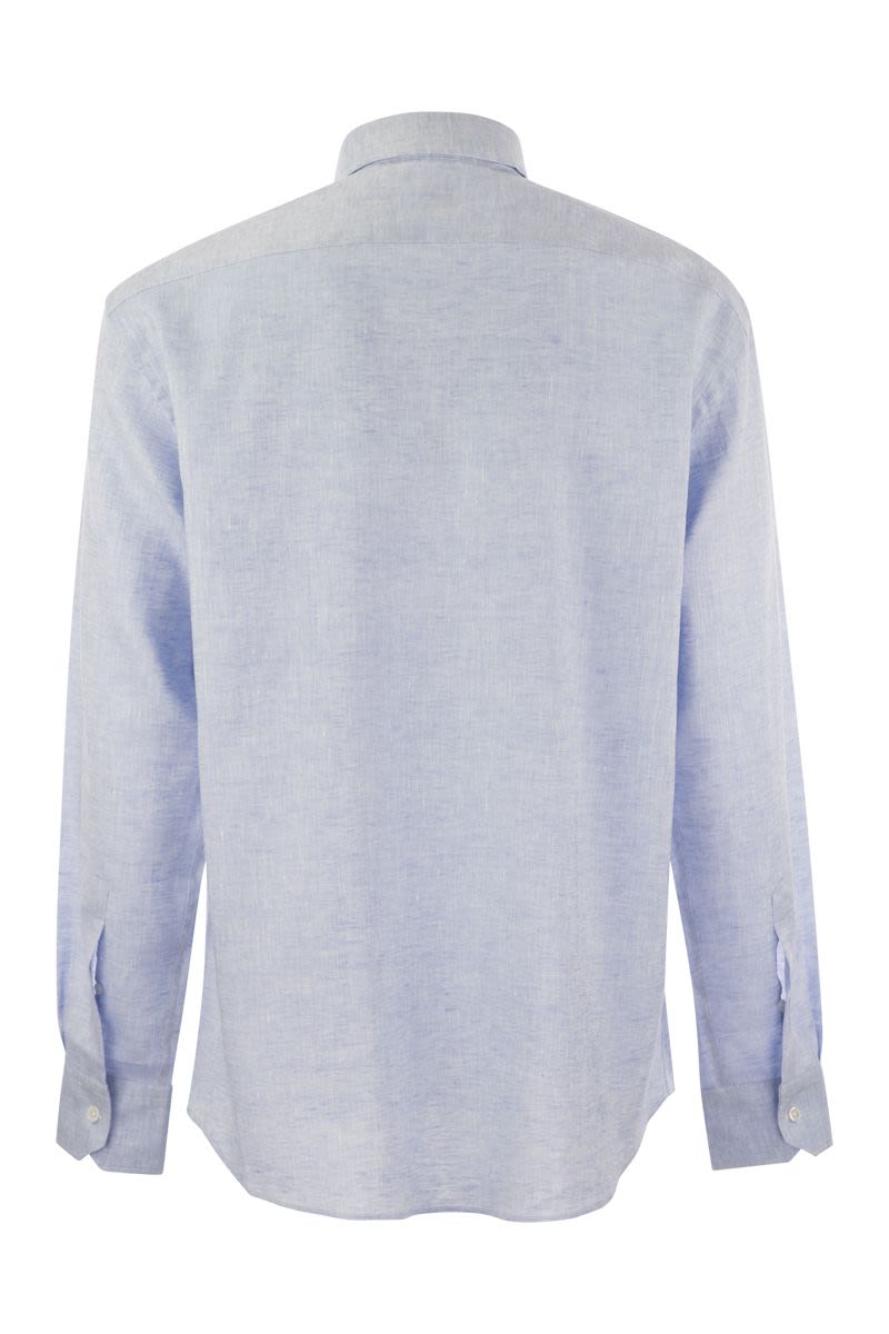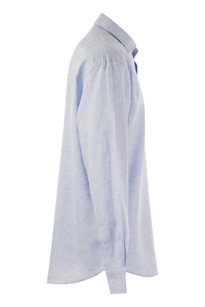 爽やかでソフトなリネン繊維のみを使用した、ゆったりとしたサマーシャツ。貴重なマザー・オブ・パールのボタンがアクセント。気楽でエレガントなルックに。