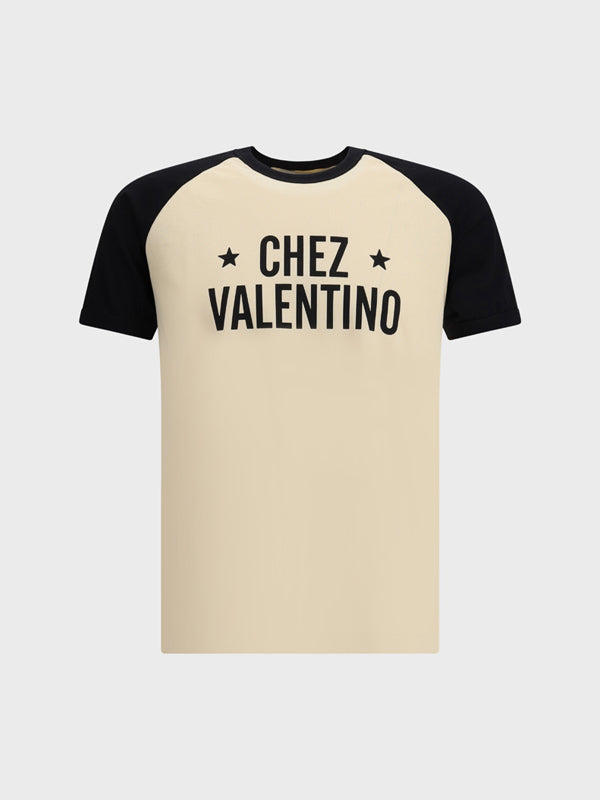 ヴァレンティノのChez Valentino Tシャツは、大胆なスタイルに欠かせないアイテムです。リブ編みのクルーネックで、フロントにプリントされたアイコニックなChez Valentinoのシグネチャーが、グラフィックでわかりやすいアクセントを添えています。個性的なアクセントでカジュアルルックを完成させるのに最適です。