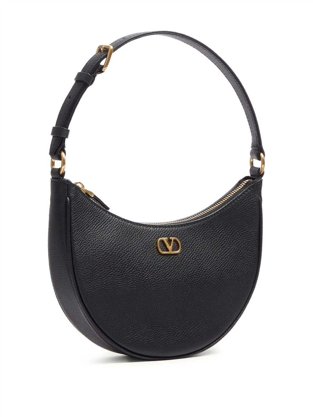 ブラック カーフレザー トップファスナー 調節可能ショルダーストラップ Vロゴ シグネチャー 内側スリップポケット