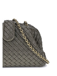 ボッテガ・ヴェネタの「ローレン 1980」レザーポシェットは、ブランドのアイコンであるイントレチャートデザインを全面にあしらい、エレガントで洗練されたルックスに仕上げています。上部のフラップはマグネット開閉式で、実用性と安全性を確保しています。内側にはコンパートメントが1つあり、物を整然と収納できます。さらに、取り外し可能なチェーンストラップは、手提げにもショルダーにもできる多用途性を備えています。