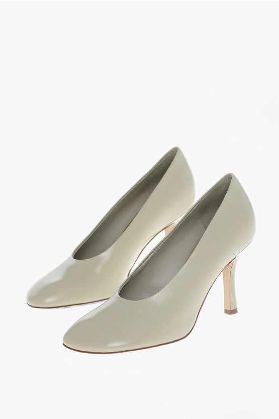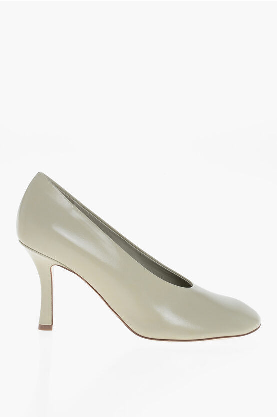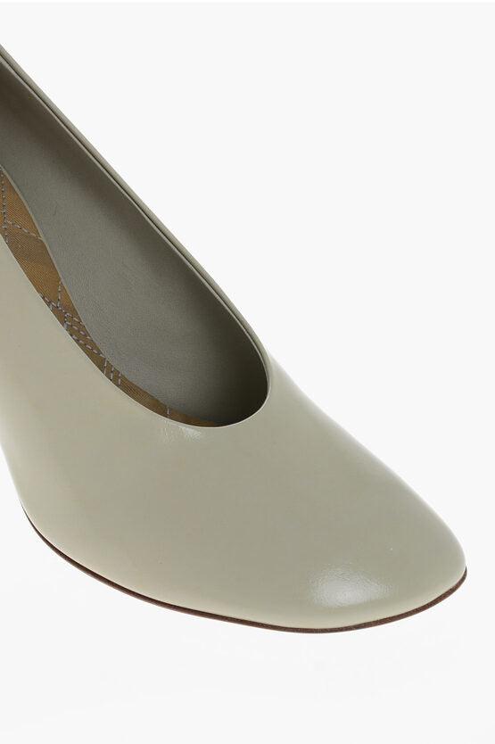 ブラッシュ加工 レザー パンプス ウィズ カバー ヒール