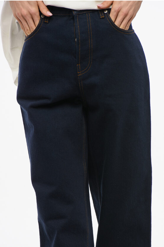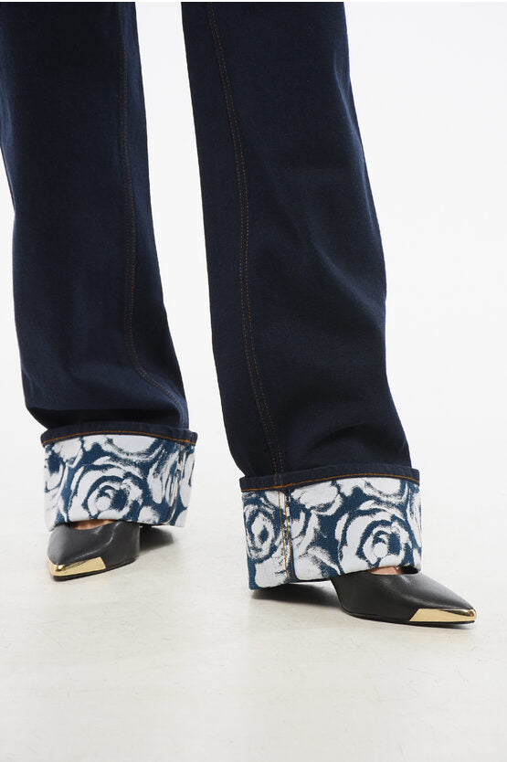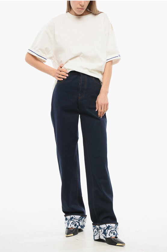 High-waisted Dark Washed Denims with Printed Cuffs 18cm