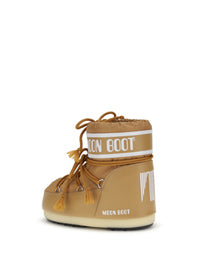 ムーンブーツのアイコンローブーツは、ブランドのクラシックなデザインをアンクル丈にアレンジ。パッド入りの全面構造で、寒い日に理想的な快適さと暖かさを提供する。シャフトにはアイコニックなモノグラムがコントラストでプリントされ、フロントのシューレースで開閉でき、プラットフォームソールがコンテンポラリーで硬質なタッチを与えている。都会的なエイプレスキースタイルにぴったり。