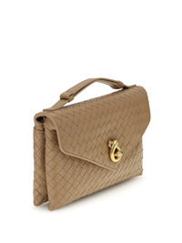 ボッテガ・ヴェネタの「ノットロック」ショルダーバッグは、洗練されたデザインとブランドのアイコンである編み込みパターンが特徴のラムスキン・レザー製。フラットなトップハンドルが特徴で、ショルダーストラップは長さ調節と取り外しが可能。前面にはアイコニックなノットロック、背面にはスリットポケットが付いています。バッグの内側には2つのコンパートメントとカードスロットがあり、エレガンスと機能性を1つにまとめています。