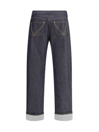 ボッテガ・ヴェネタの「インディゴ リンスド ワイドレッグ ジーンズ」は、ソフトなラインと洗練されたディテールで、リラックスしたエレガンスを表現しています。繊細なインディゴウォッシュを施した軽量デニムを使用し、裾にターンアップを施し、バックにアイコニックなイントレチャートパターンをあしらったスエードパッチをあしらっています。洗練されたコンテンポラリーなスタイルに欠かせない一着です。