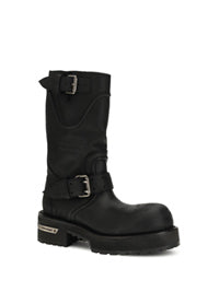バレンシアガのヴェノム・ブーツは、アーバンスタイルを大胆かつ現代的に解釈したもの。超ラウンドトゥと20mmのカーブが特徴で、履き古したような硬質な表情が際立ちます。アッパーにはバレンシアガのロゴとパリの住所「10 AV George V」がエンボス加工で施されています。ソールサイドに刻印されたロゴプレートと厚みのあるノッチ付きラバーソールが、無骨な美しさと機能性を兼ね備えています。