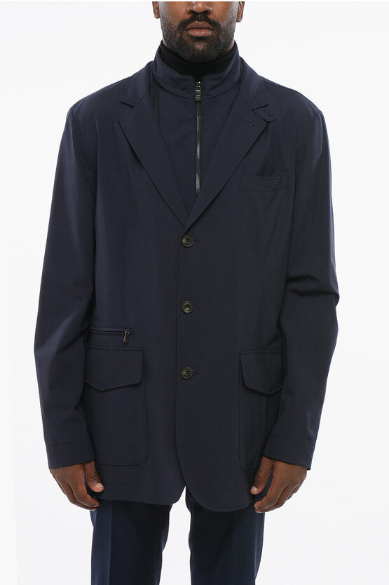 シングル ブレスト ウール ブレンド コート ウィズ チェスト ピース