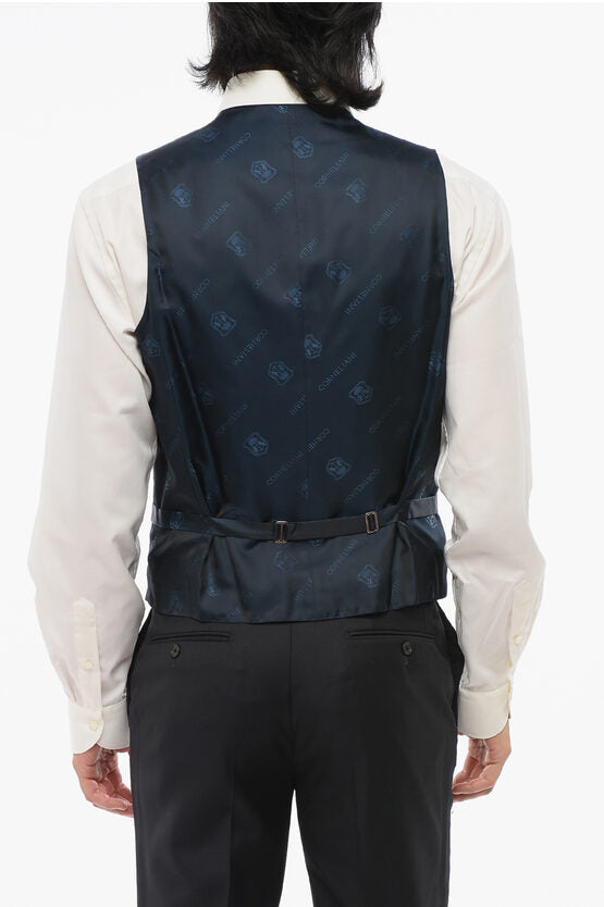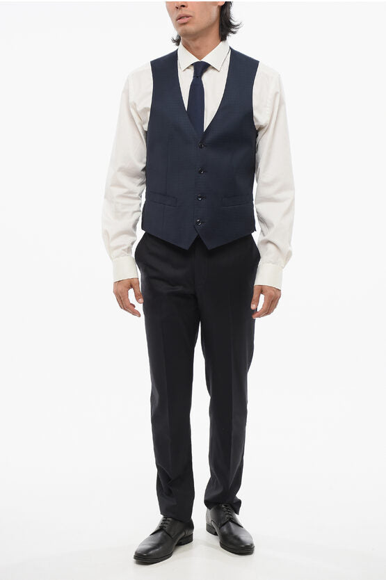 CERIMONIA ACADEMY Geometric Motif Vest with Five Buttons