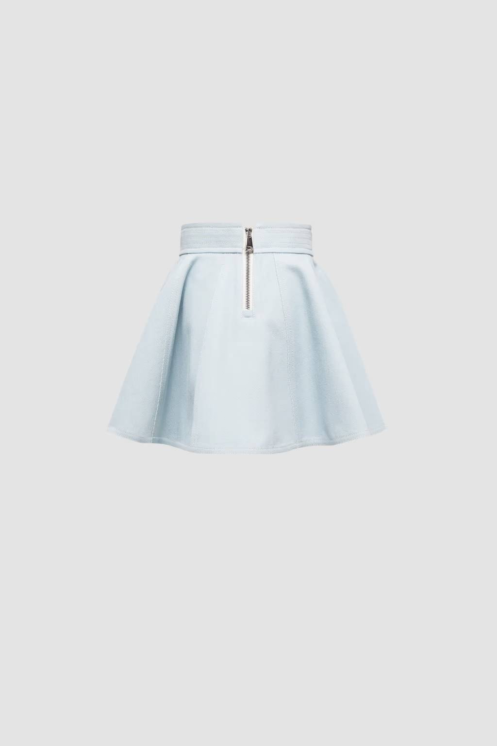 ライトブルー 背面ファスナー開閉 サイドにシームディテールロゴパッチ