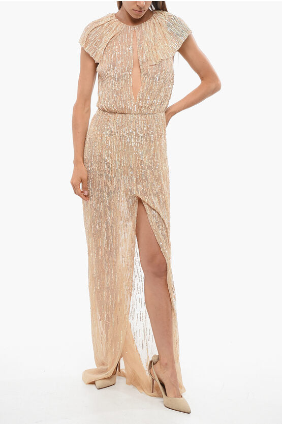 レッド カーペット スパンコール ドレス ウィズ ケープ デザイン