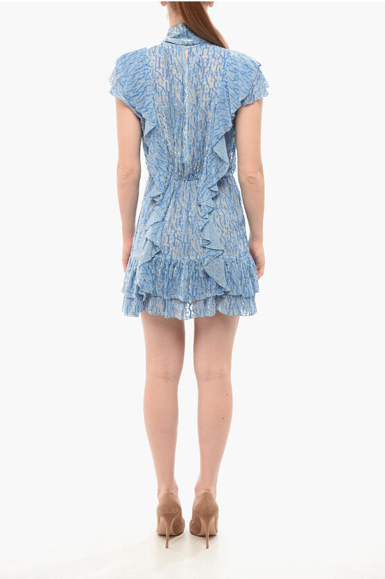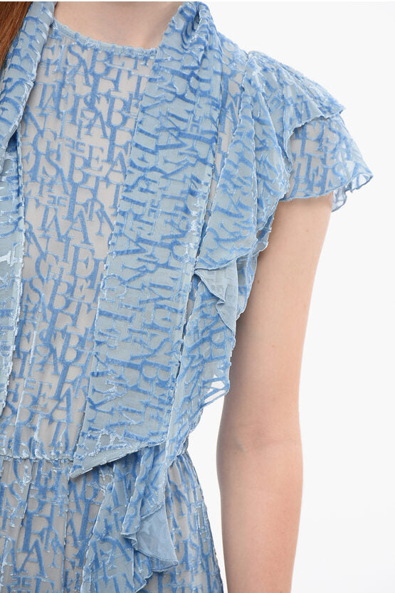 Flocked Chiffon Dress with Tie Neck Design