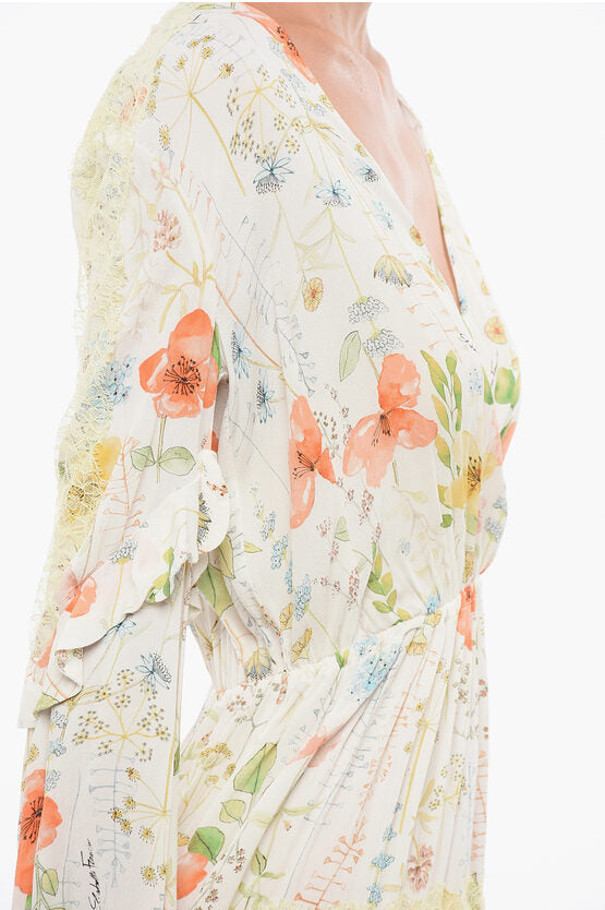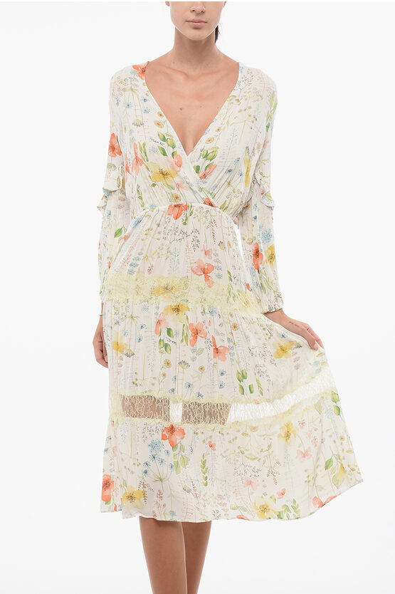 Floral Pleated Dress with Lace Detail