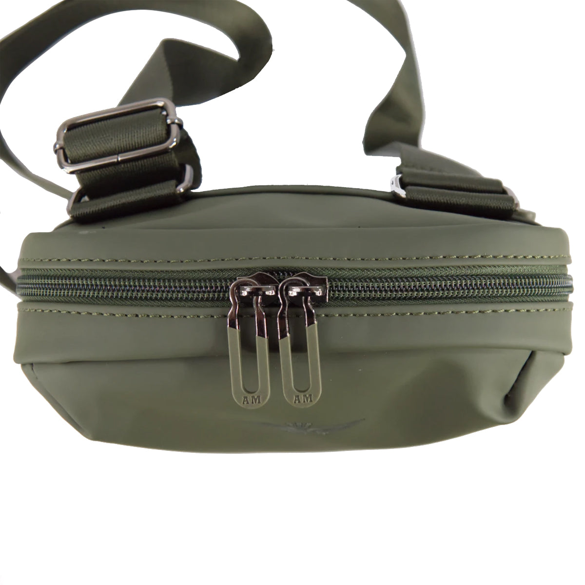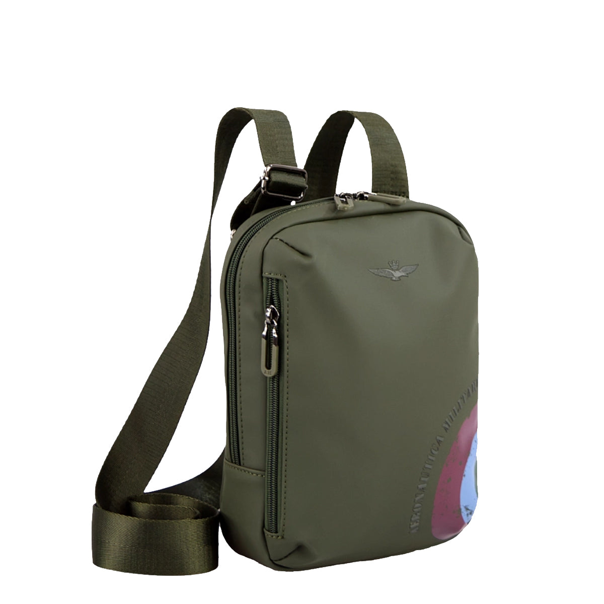 ランウェイブルー・クロスボディバッグ Aeronauitca Mililtare.スポーティー。フロントにロゴの入ったテクニカルファブリックアクセサリー。