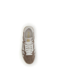 Amiriの「Croc Debossed Pacific Bones」スニーカーは、クラシックなスポーツスニーカーにインスパイアされたメゾンのアイコニックな「Pacific」モデルの洗練された再解釈です。スエード素材にクロコの型押しを施したこのスニーカーは、スポーティーなエレガンスを引き立てる低めのスマートなフォルムが特徴です。ラバーソールにはアイコニックなMAモチーフがあしらわれ、アッパーにはレザーのボーンアップリケがあしらわれている。