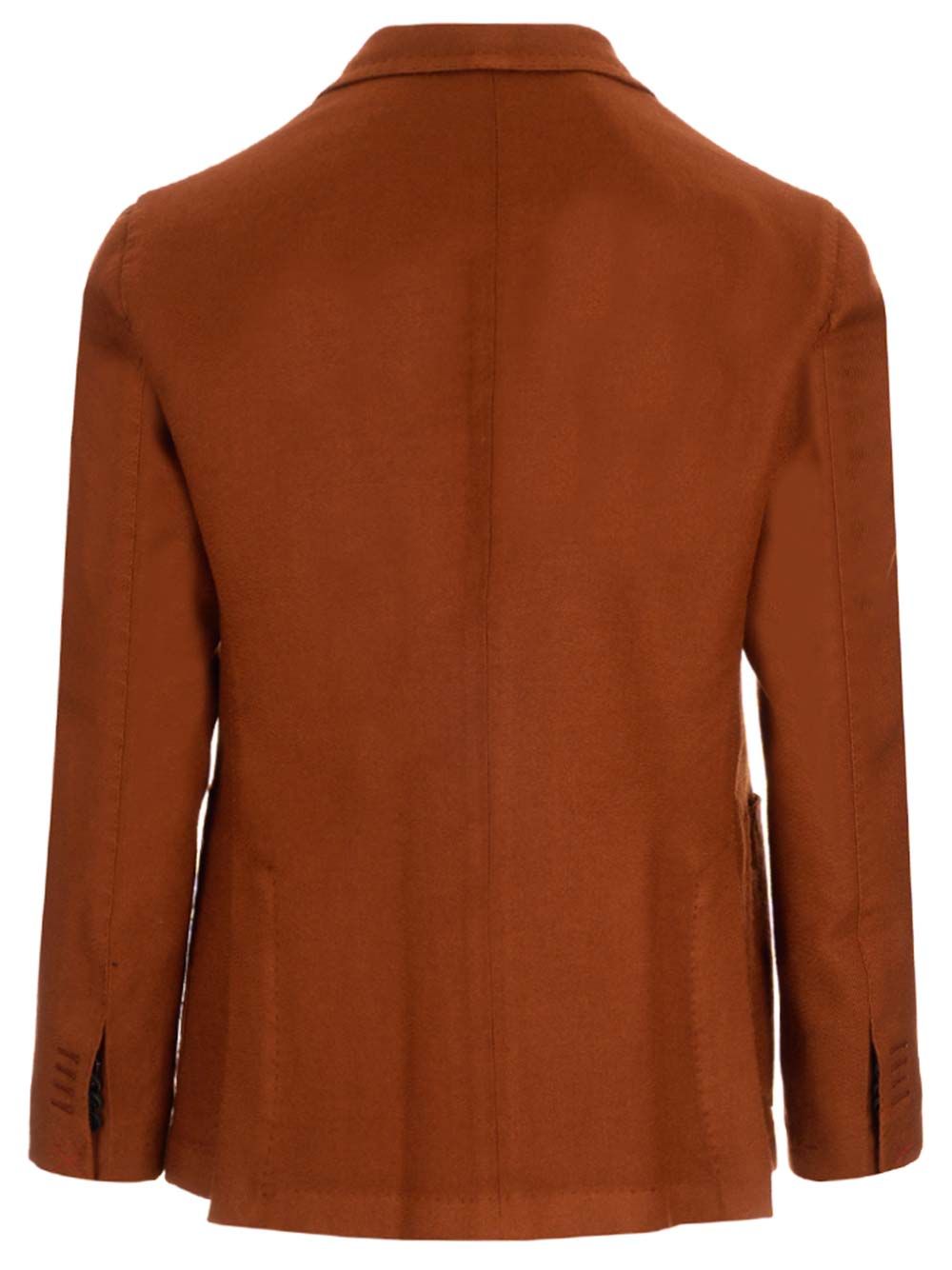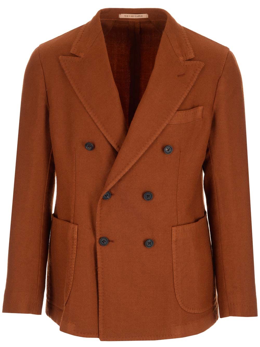 Double-breasted jacket in sienna-colored wool with patch pockets and wide peak lapels