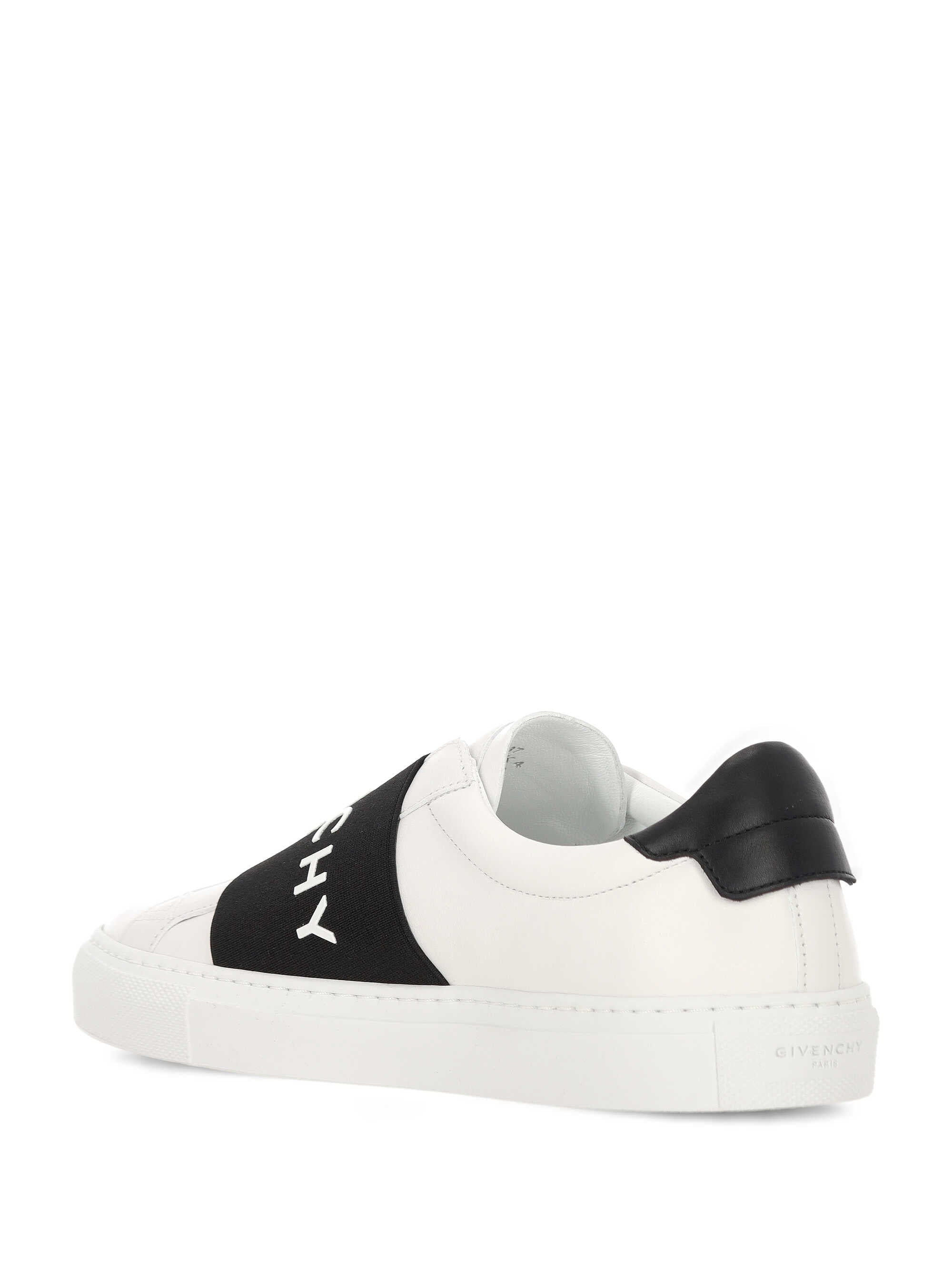 ホワイトレザー ブラックバンドロゴ入り スリッポンスタイル フラットソール