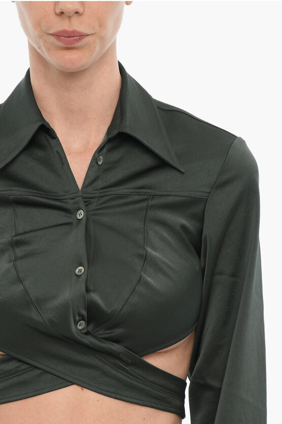 Satin Crop Shirt with Wrapped Detail