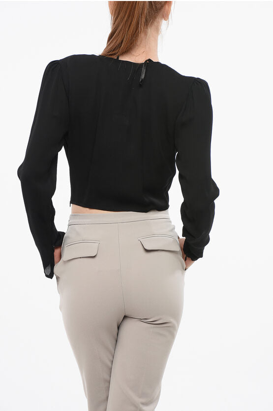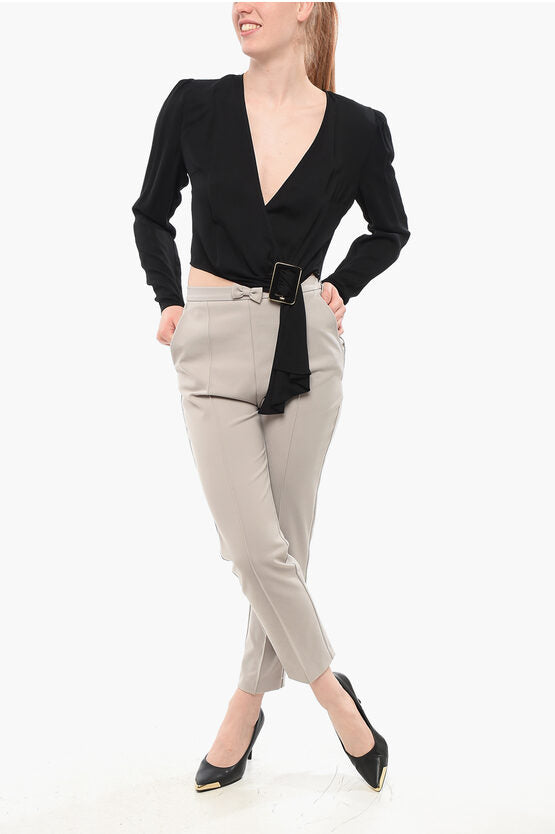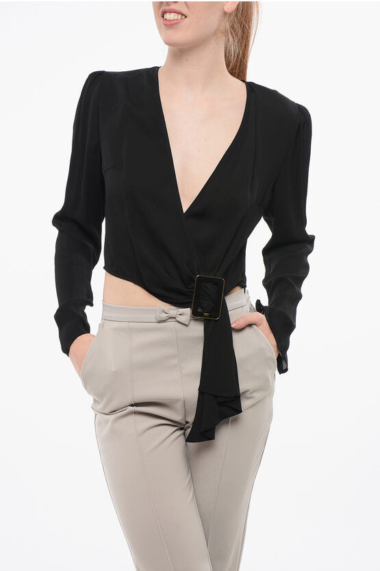 Cropped Fit Wrap Blouse with Buckle