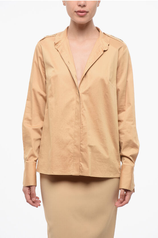 ストレッチ コットン シャツ ウィズ マンダリン カラー