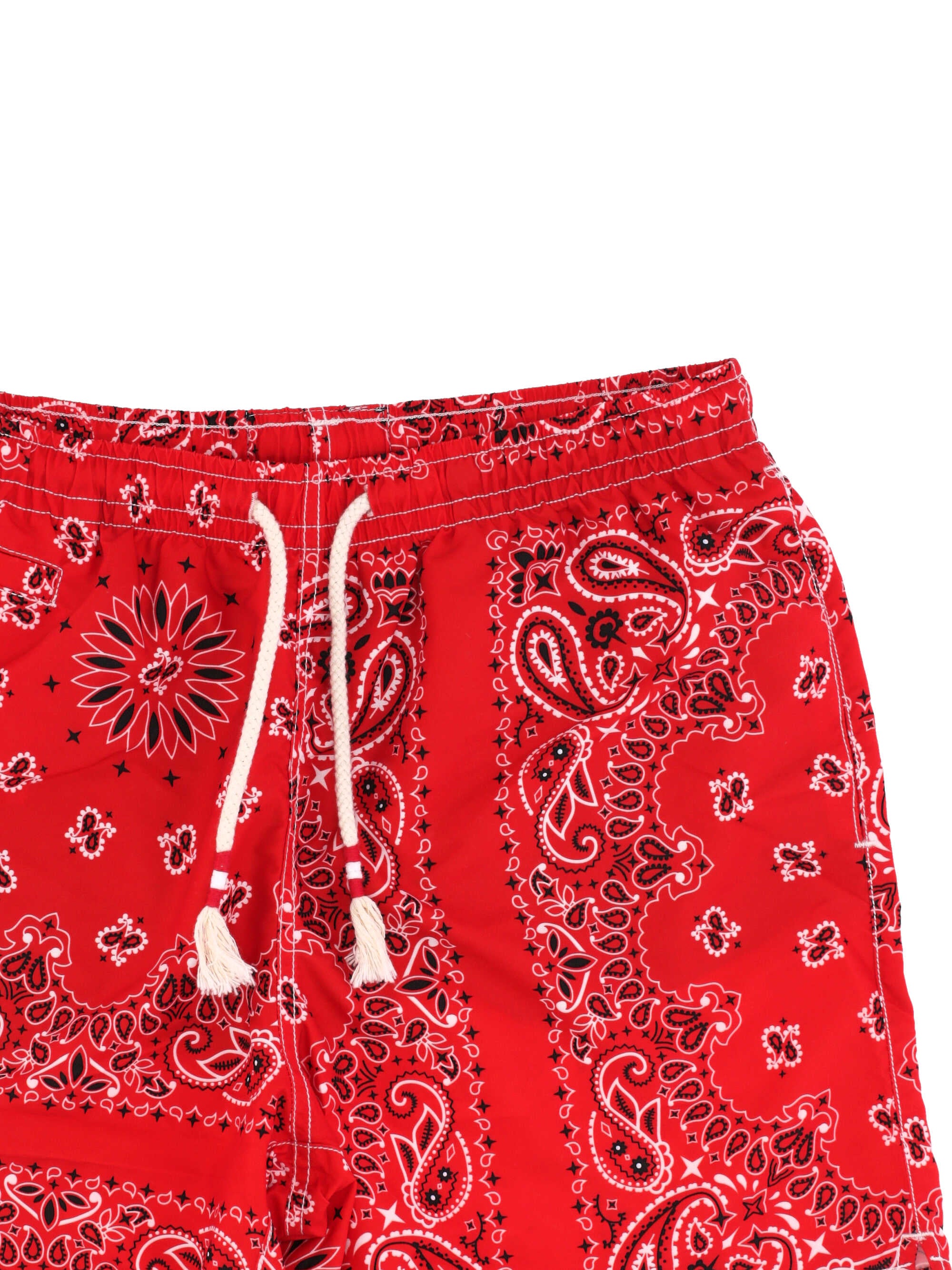 メンズ水着レッドバンダナプリントTrue to size軽量素材ウエストゴムドローストリングクロージャーインナーブリーフ