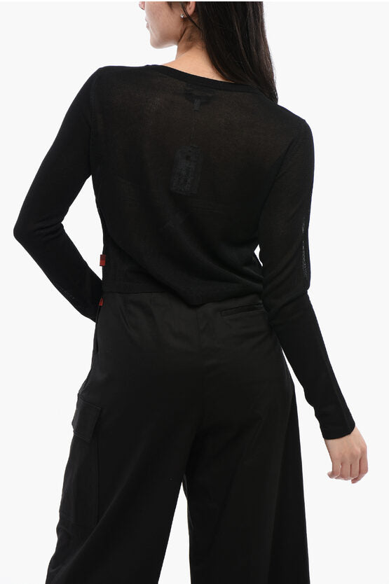 Cropped Fit Viscose Blend Sweater with Crew Neck