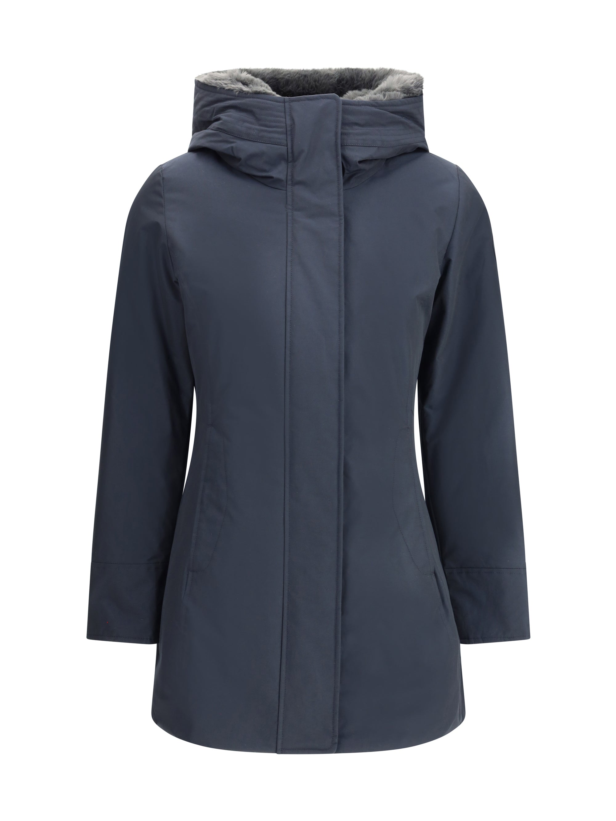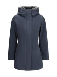 ウールリッチのボルダー・ダウン・ジャケット - 隠しスナップボタン付きのフロントジッパー開閉 - 裏地にフェイクファーをあしらったフードデザイン - 伸縮性のあるリブ編みの袖口 - 中わた入りでキルティング加工を施した裏地デザイン - ボタン付きのウェルトポケット - 左肩にブランドのアイコニックなロゴワッペン。