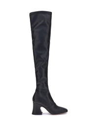 ChloEのハイレザーブーツは、その大胆でコンテンポラリーなデザインが際立っている。太ももの真ん中まである高さで、アシンメトリーなヒールとスクエアなつま先がモダンなスタイルを引き立てます。サイドのジッパーが実用的で快適な履き心地を実現し、大胆で洗練されたスタイルにぴったりです。