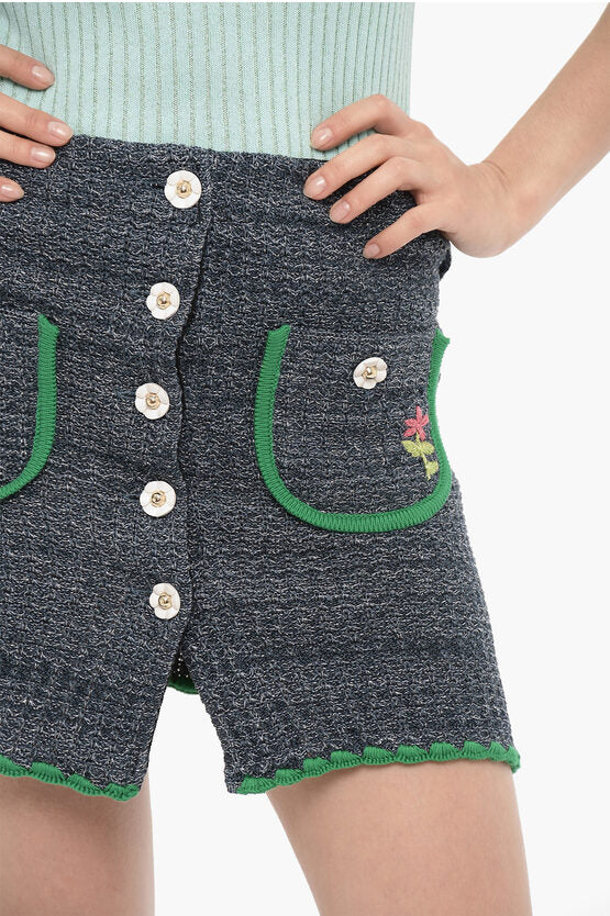 Lurex CHIARA Mini Skirt with Front Pockets and Decorative Bu
