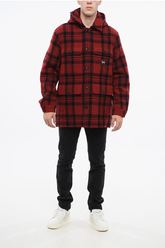 チェック柄 チェック ウール ブレンド パデッド オーバーシャツ