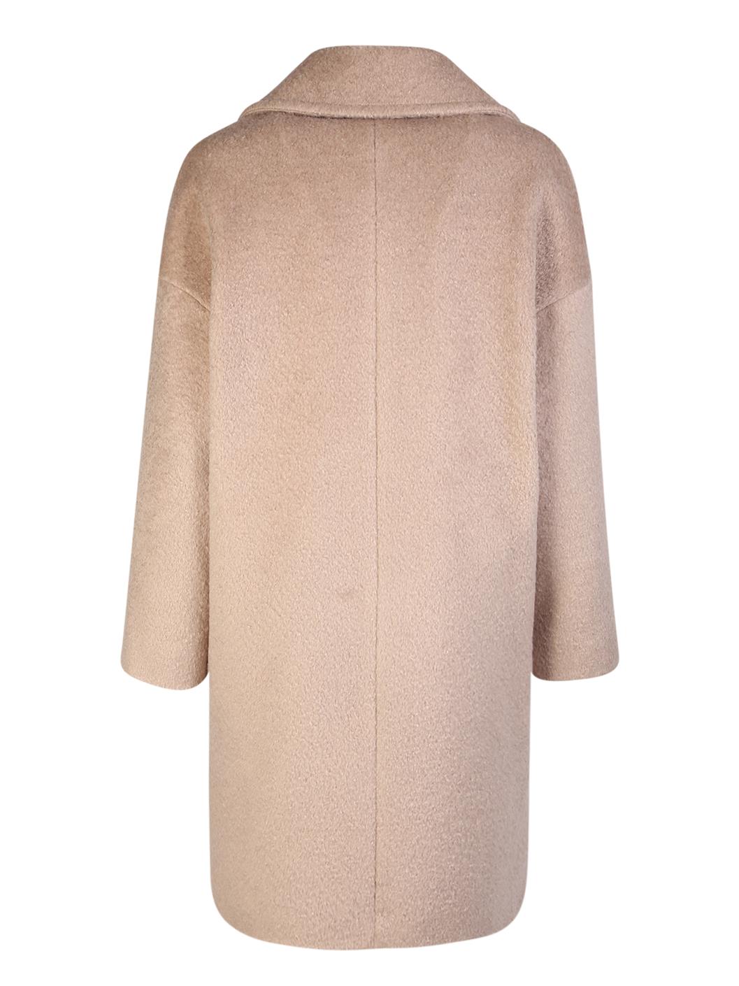 ノッチドラペル。ロングスリーブ。ダブルブレストボタン留め。ブークレ素材。両サイドにスリットポケット。カラー: ベージュ