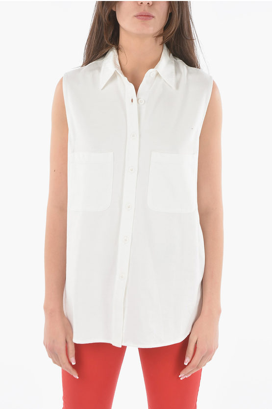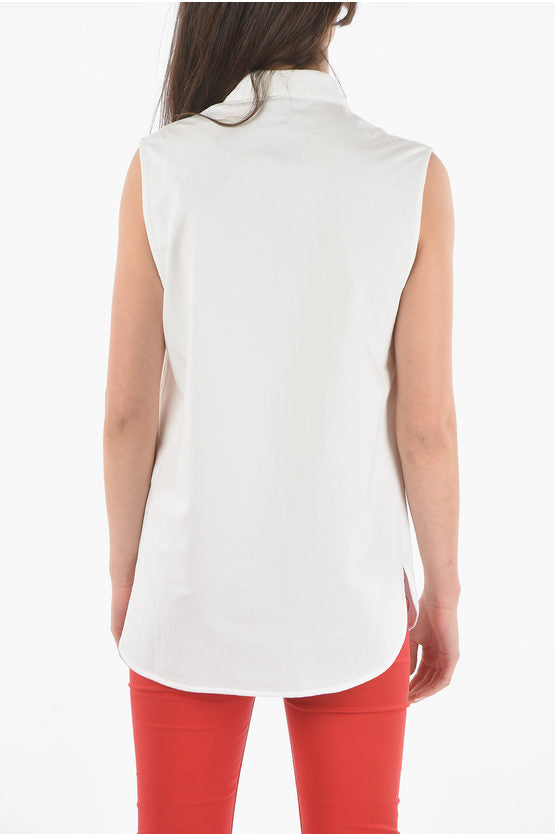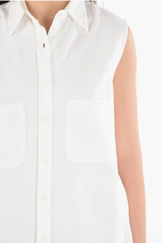 コットン スリーブレス マキシ シャツ ウィズ ダブル ブレスト ポケット